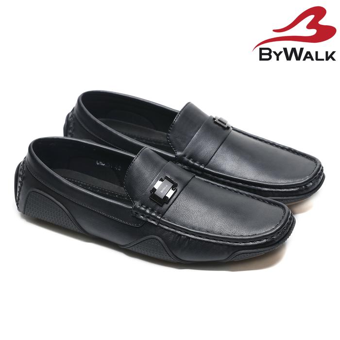 Bywalk Cms31 Sepatu Loafers Pria Formal Moccasin Slip On Flat Shoes Kerja Kasual Hitam - Black, 38