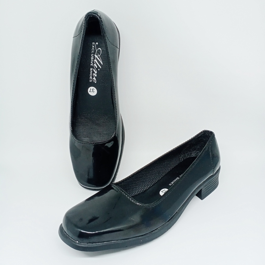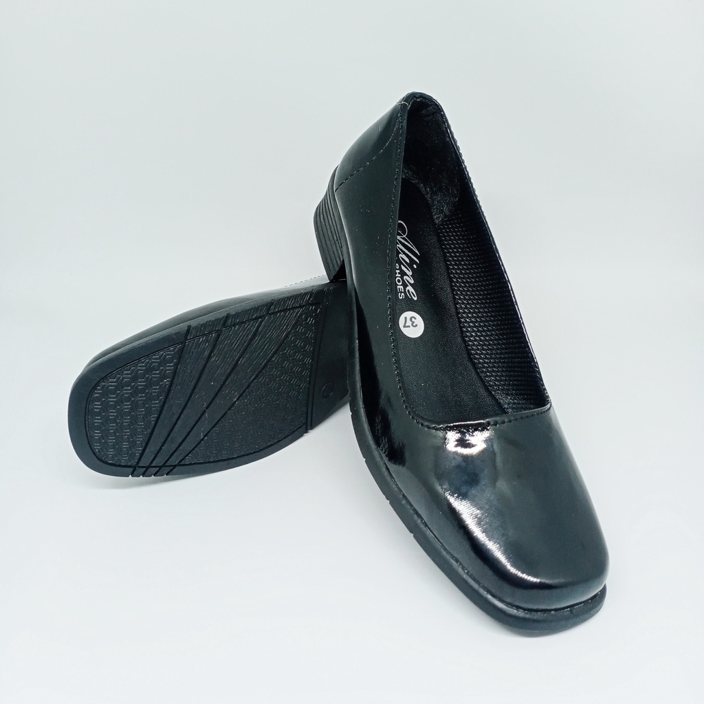 Aline Sepatu Pantofel Wanita Glossy 3 Cm Polos Hak Tahu Formal Kerja Kantor Kilap Glosy AW02
