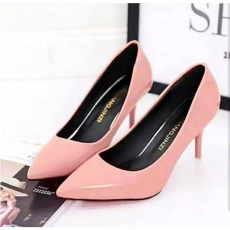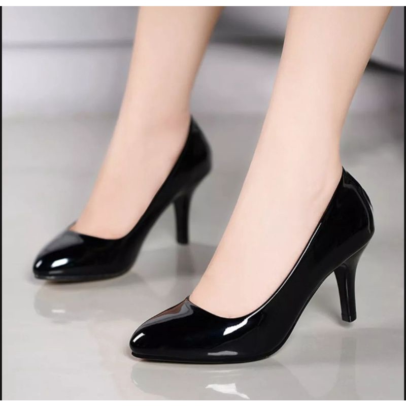 High Hells Kantor Glossy Fantofel Tinggi 5cm Sentetis 36-40