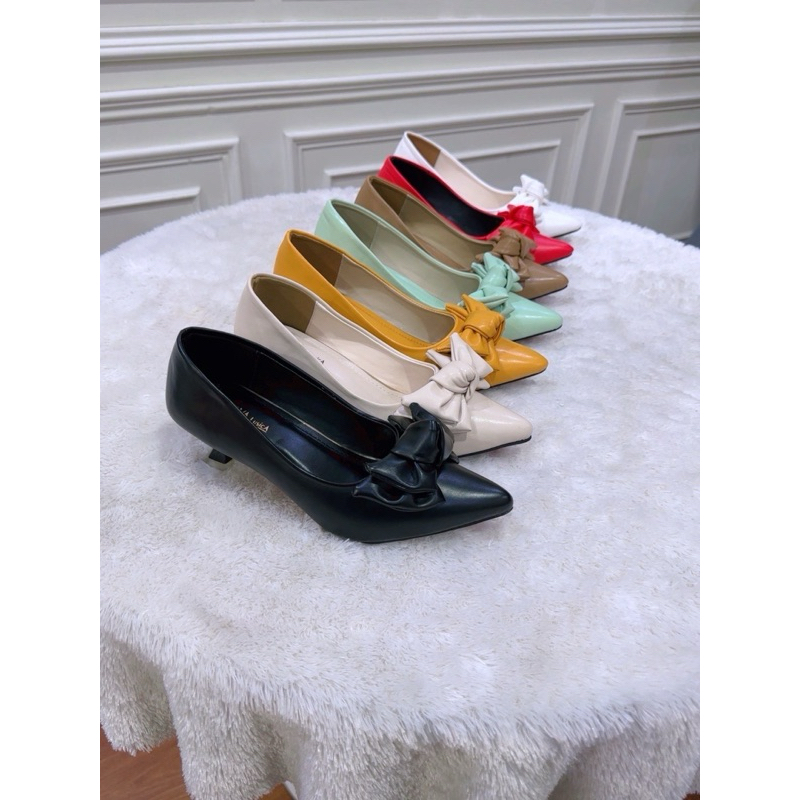 sepatu wanita Heels 3 cm Louisdear 017 bahan dove pita premium import