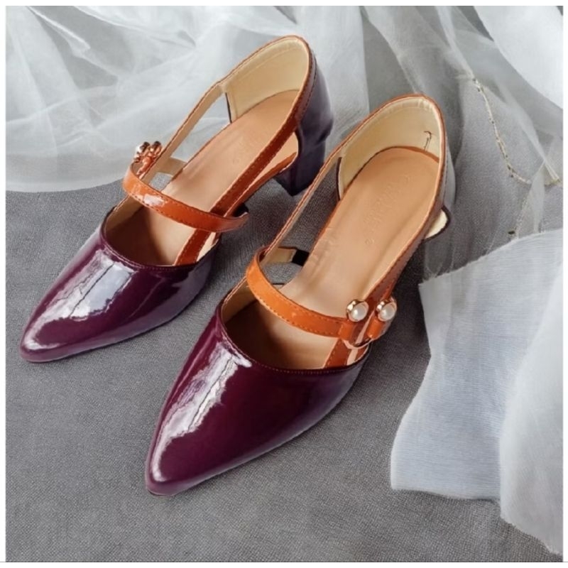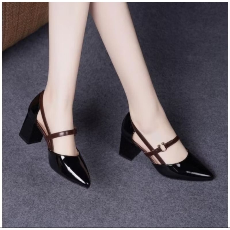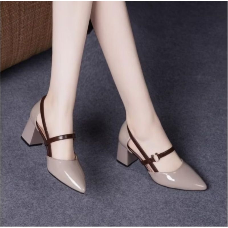 Sepatu Fantofel Wanita Heels Tali Slop Belakang 5 Cm BG01B