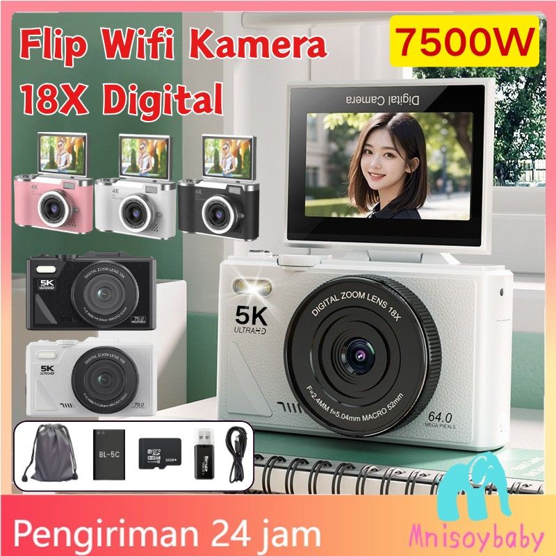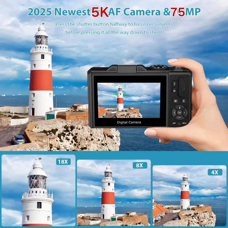[Penjual Lokal] Kamera Digital 75/48MP 18X Zoom Camera Digicam Layar Balik 180° LCD 3.0 Inci 5K/4K Vlog YouTube Ant