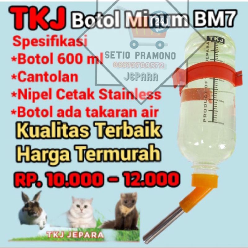 botol minum hewan 600 ml Cetak stainless BM7 botol minum nipel DOT kelinci kucing anjing musang Hamster