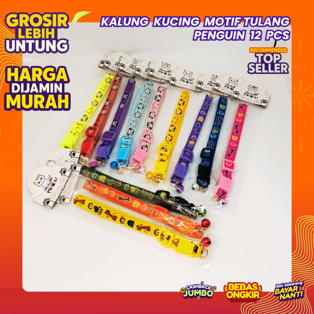 [12 PCS GROSIR] Kalung Kucing / Anjing Motif Murah dengan Lonceng - Bisa Grosir Harga Murah