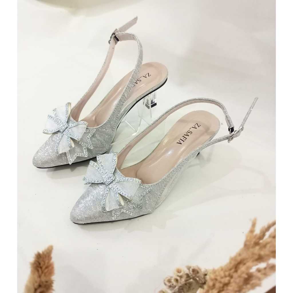 ZASAFIA SN32 - Heels Hak Kaca Wanita 5 cm Slingback Glitter Pita