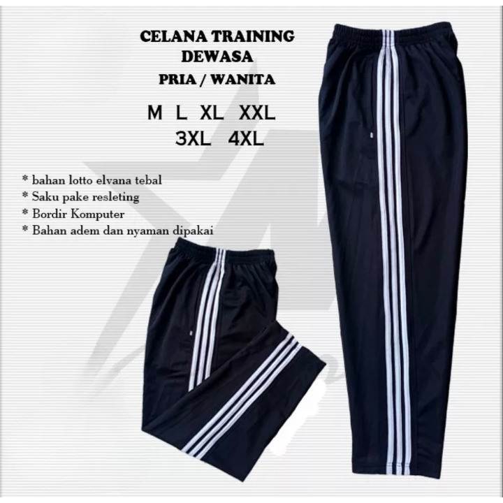 Celana Training Strip 3 Panjang Dewasa Pria Wanita Murah / Training Olahraga / Trening Cowok