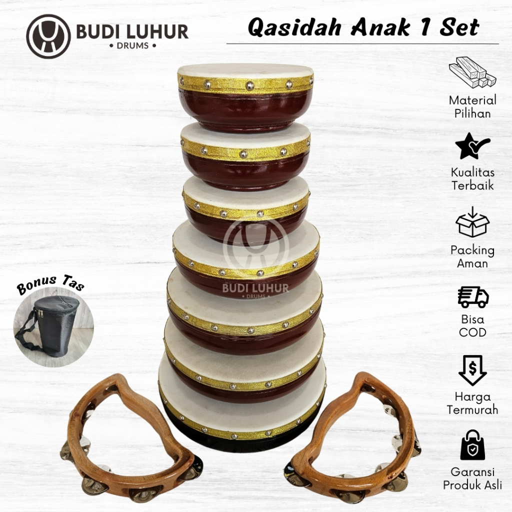 PROMO 1 Set Rebana Hadrah Anak Fullset Paket Lengkap Komplit Siap Pakai Untuk Alat Musik Sholawatan
