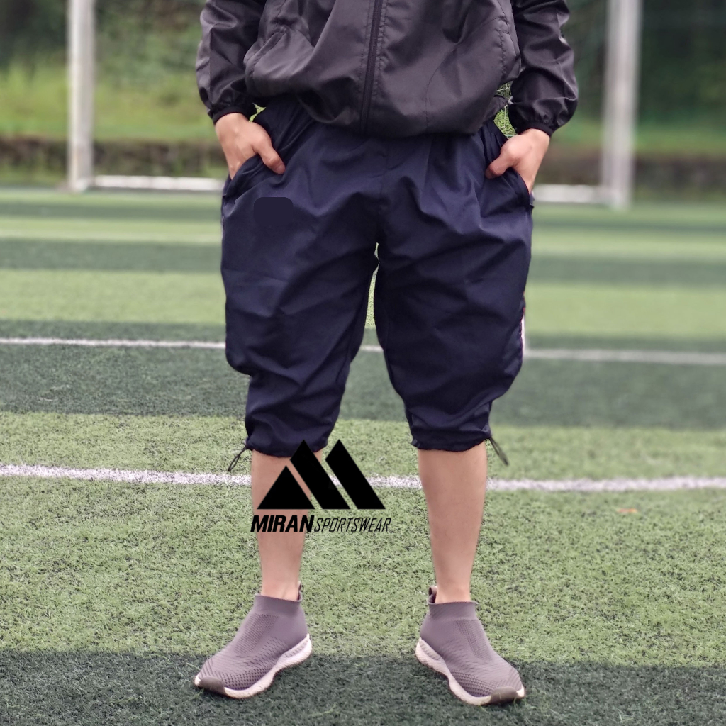 Celana Sport Wanita Sontog 3/4 Selutut Saku Resleting Samping Celana Training Olahraga Hitam Pria