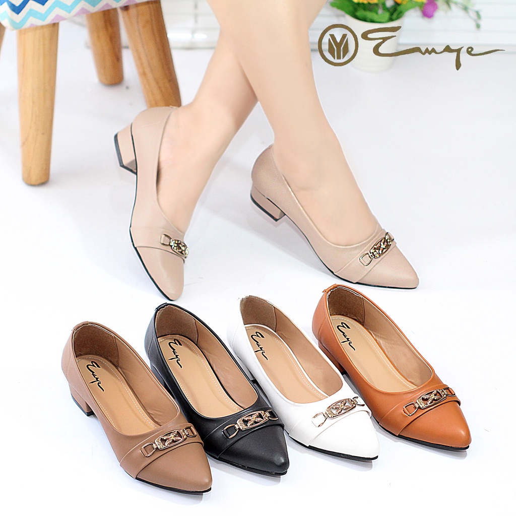 Emye - Sepatu Pantofel Wanita Putih Hitam Hak 3cm Kulit Sintetis - DAISY
