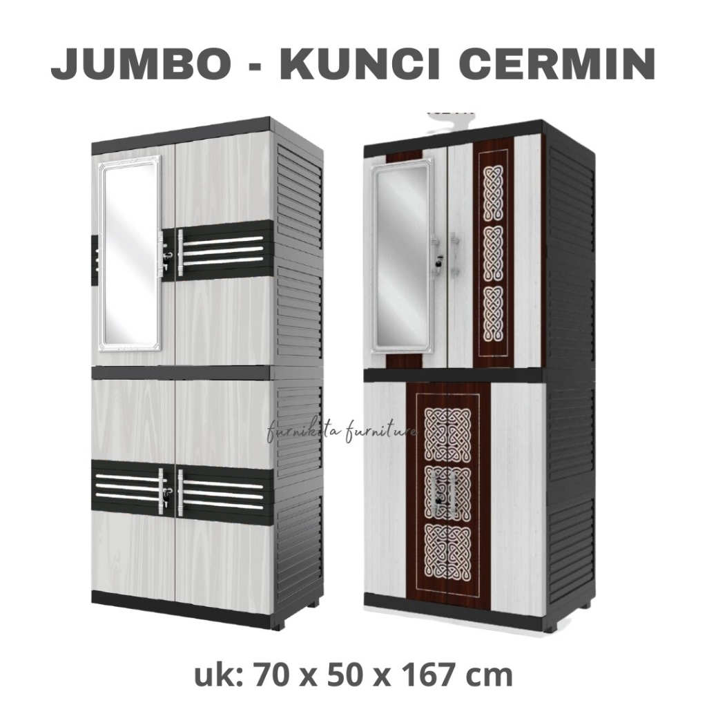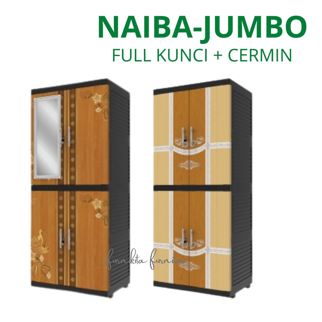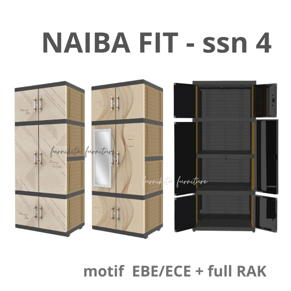 LEMARI PAKAIAN PLASTIK NAIBA FIT FULL KUNCI CERMIN SUSUN 4