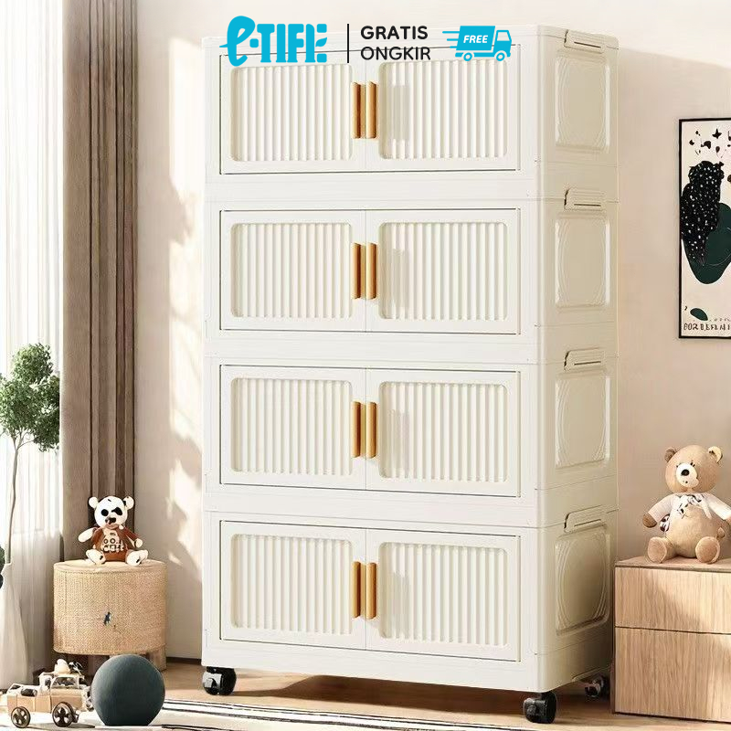 【2/3/4/5Susun】Lemari Pakaian Lipat Multifungsi Rak Penyimpanan Baju Lemari Plastik Susun Dengan Roda