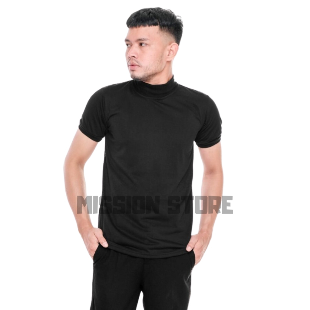 Kaos Polos Daleman Pria Dinas Satpam Security Polisi Polri TNI Kerah Pendek Kerah Tinggi Warna Hitam