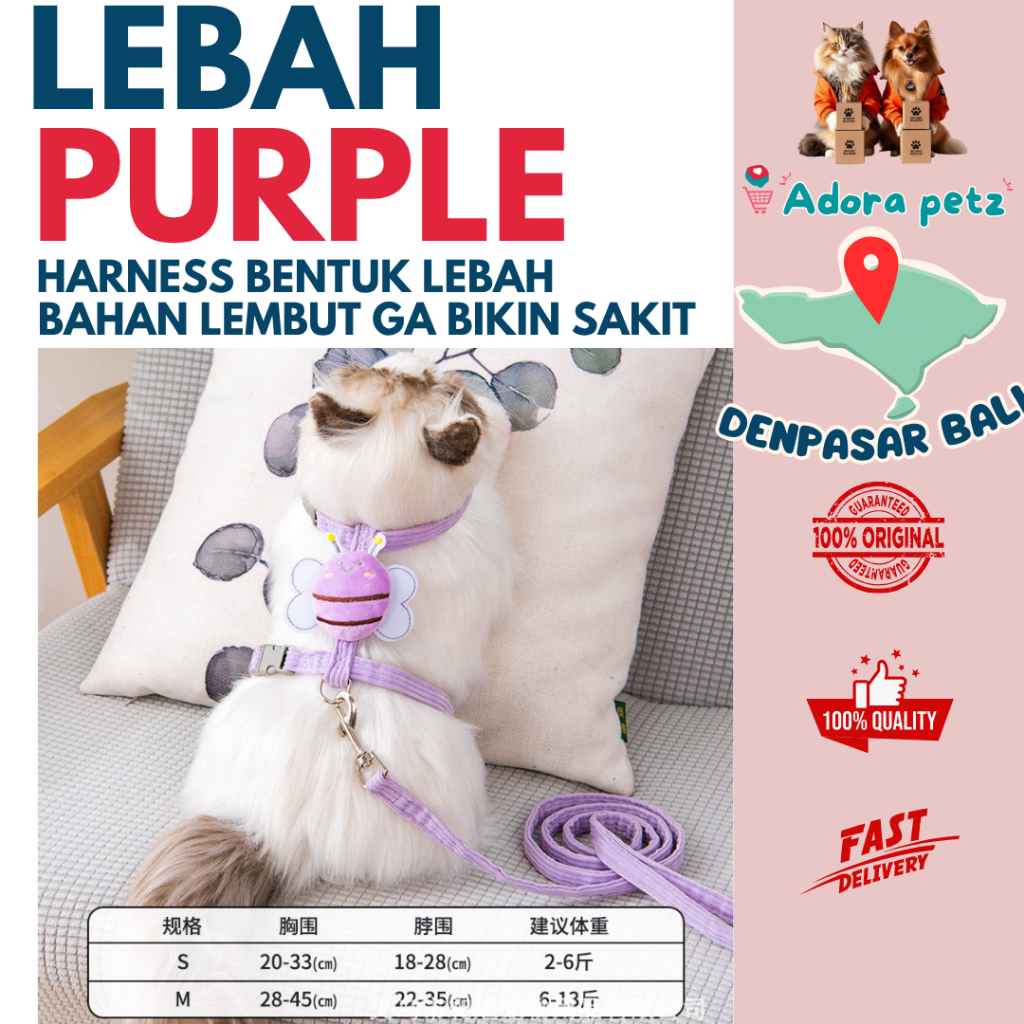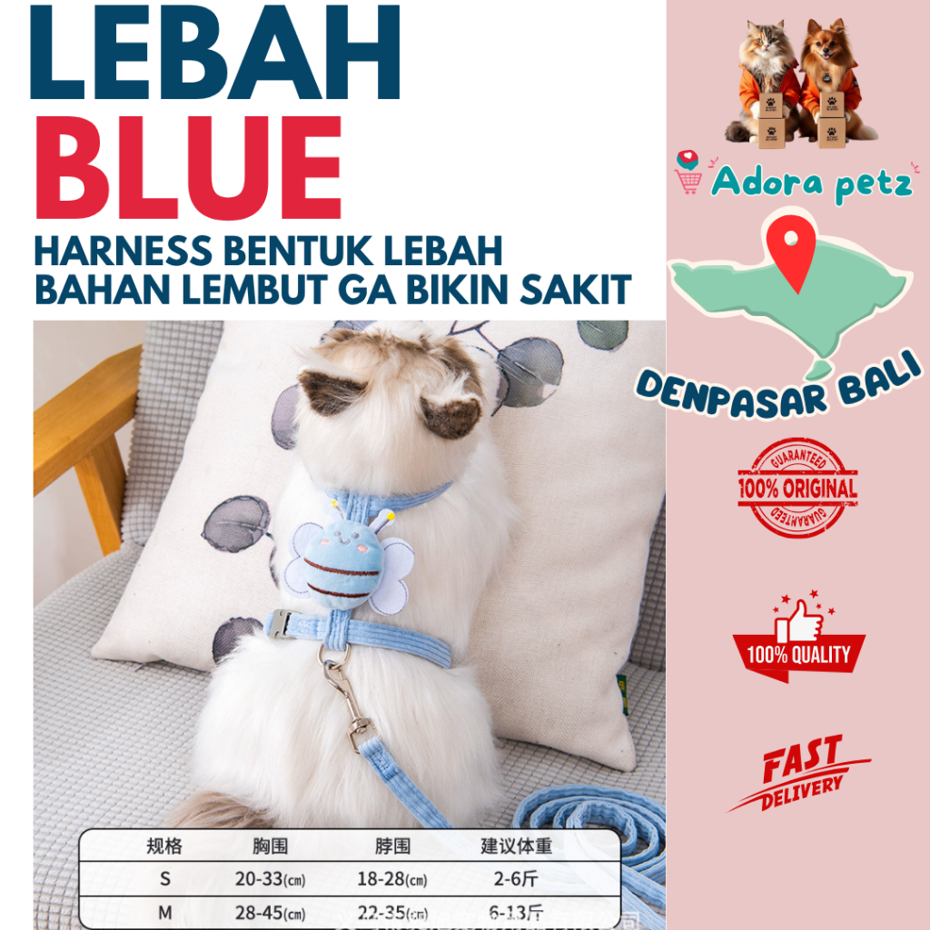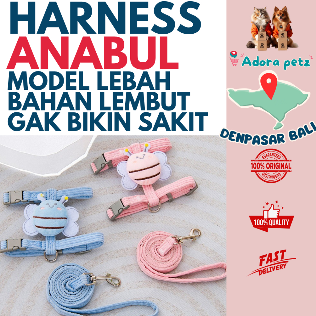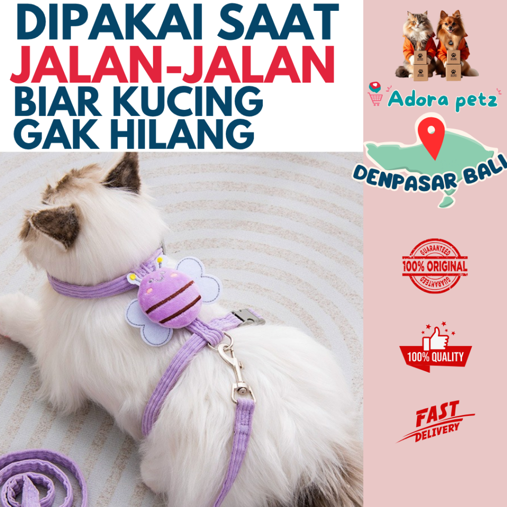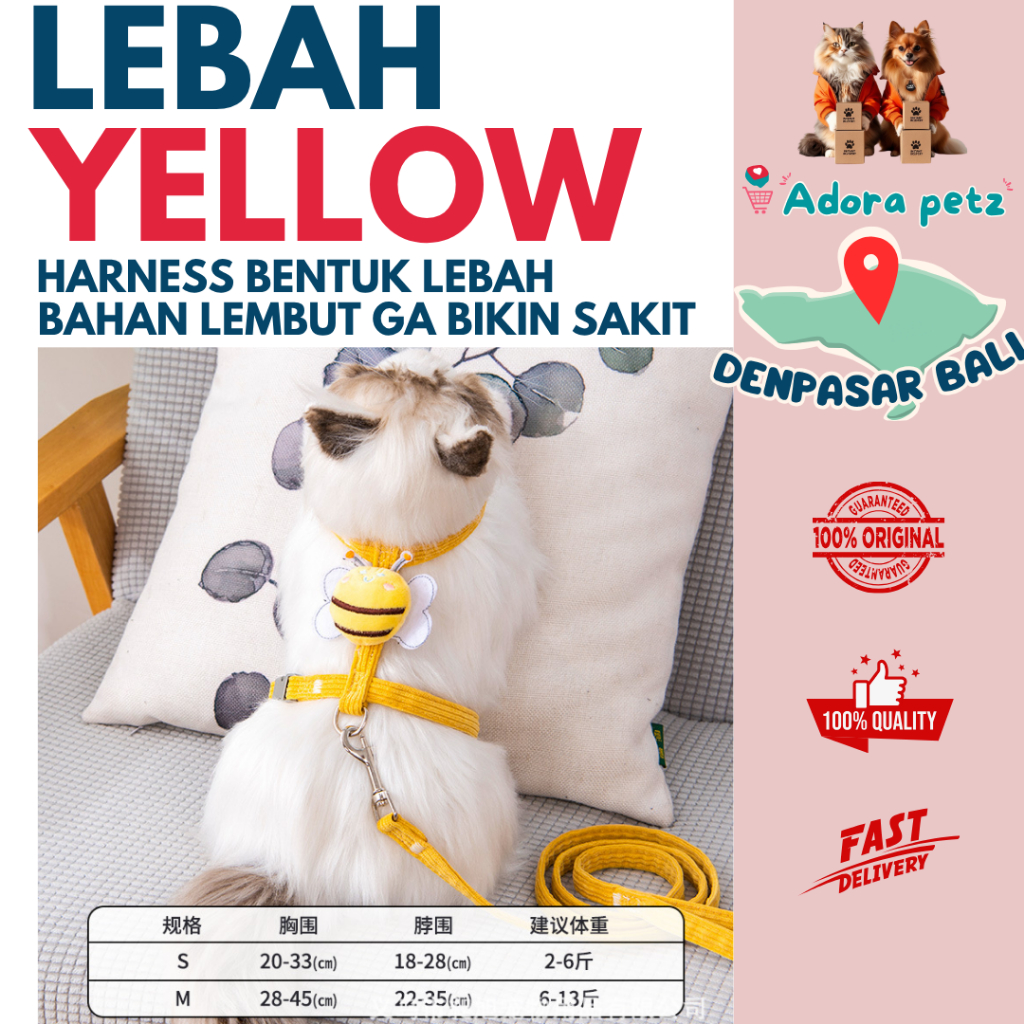 Harness Bee Imut dengan Tali Tuntun, Untuk Kucing, Anjing, Klinci Bahan Corduroy Lembut [ADORA PETZ]