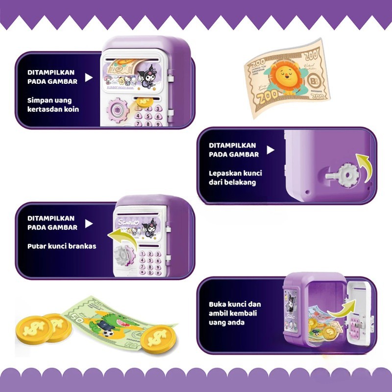 XiNZ Kuromi Elektrik Celengan Fingerprint Safe Brankas Mainan Kotak Penyimpanan dengan Kunci