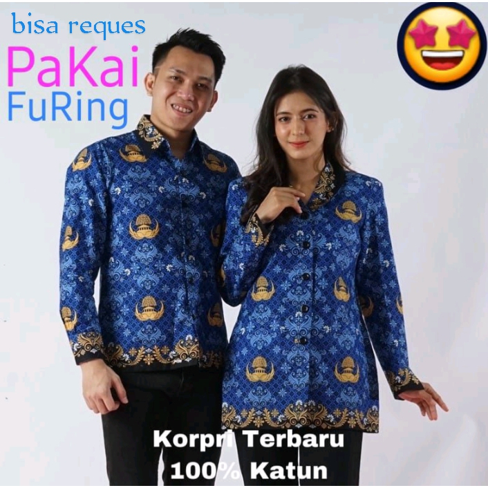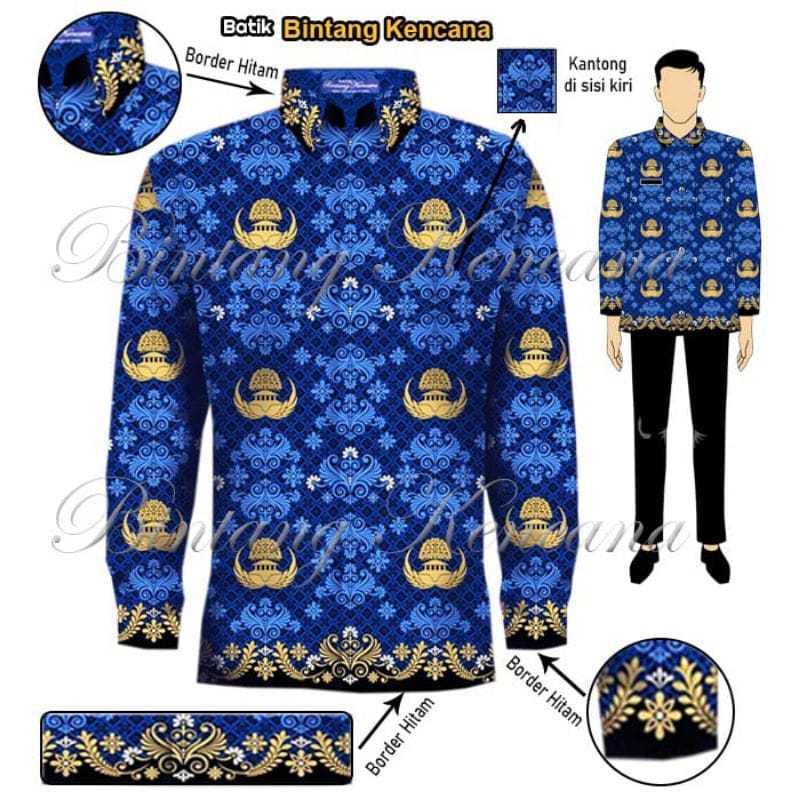 batik korpri kerah hitam terbaru full furing katun halus lengan dan kerah hitam tumpal