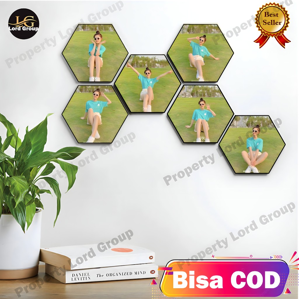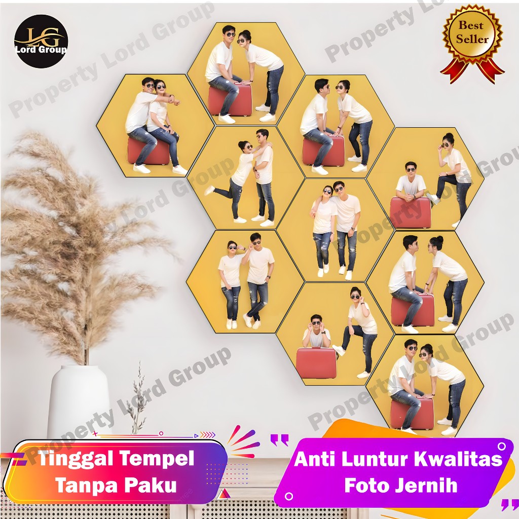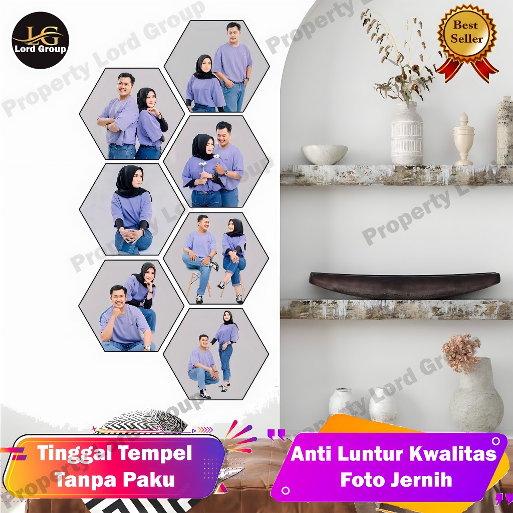 Cetak Foto Hexagonal MDF 20cm – Hiasan Dinding Aesthetic – Wall Decor Custom – Tanpa Paku – Glossy Laminasi