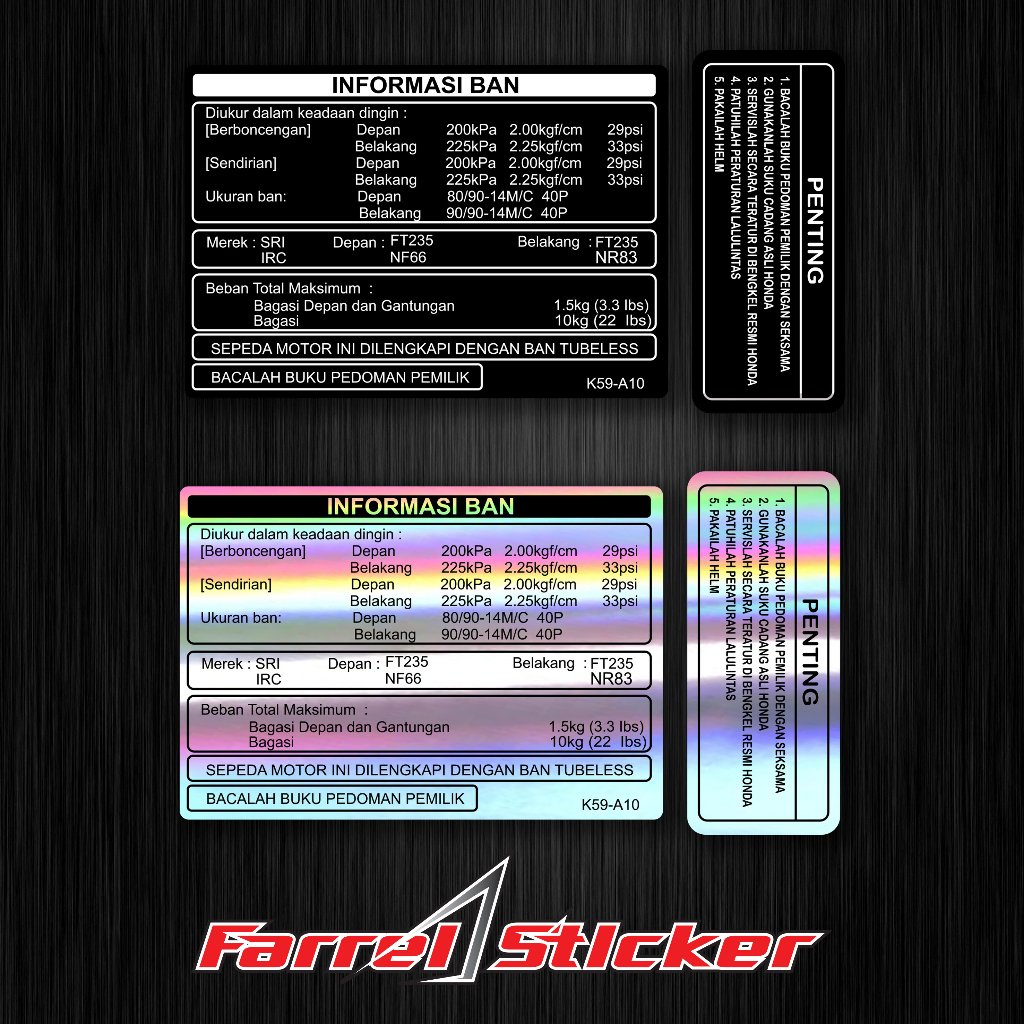 Stiker Prosedur Honda Bahan Print Kuat Laminating