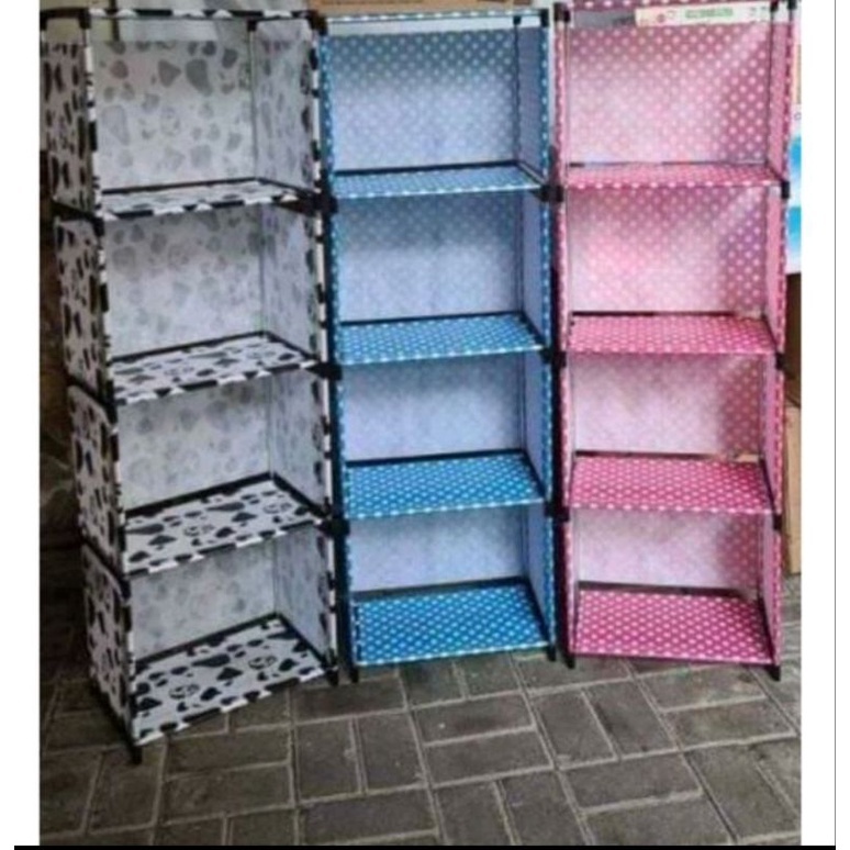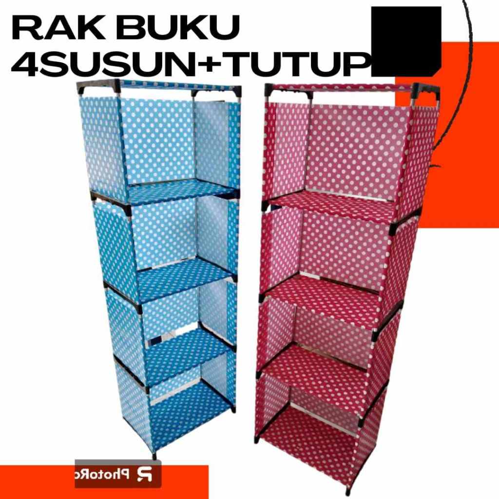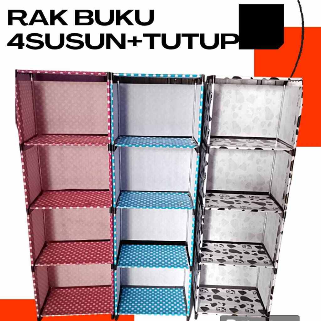 Rak Buku 4 Susun 5 R Tutup Belakang Rak Buku + Tutup Kain Belakang 4 Tingkat + 4 Pipa Penyanggah