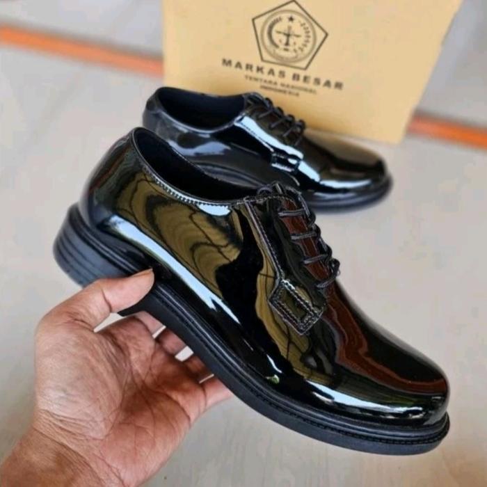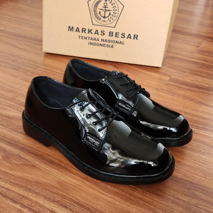 Sepatu Pdh Jatah Mabes Tni - Sepatu Pdh Tni Polri Kantoran - Mabes Tni Hitam Glosy, 38