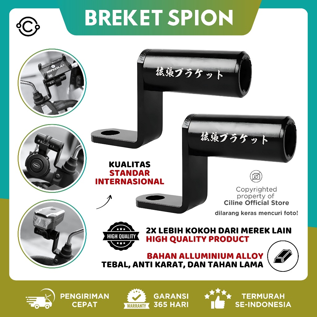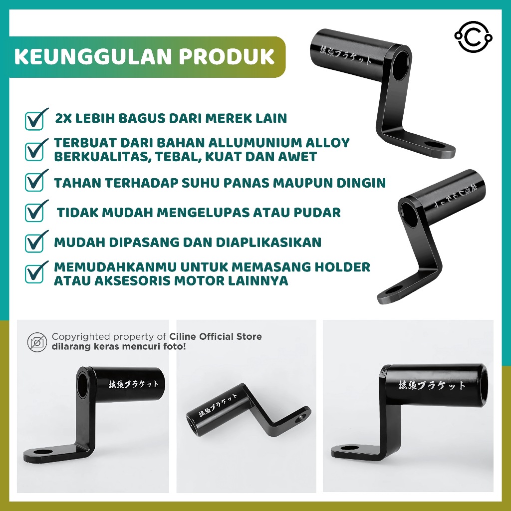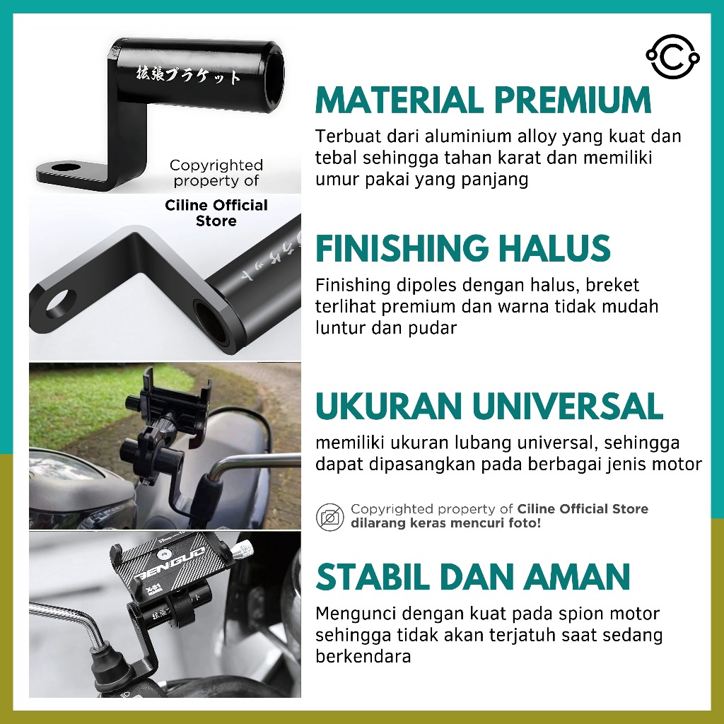 Ciline Braket Spion Holder HP Dudukan Lampu Moto Bar Tembak Spion Cnc Universal Allumunium Alloy
