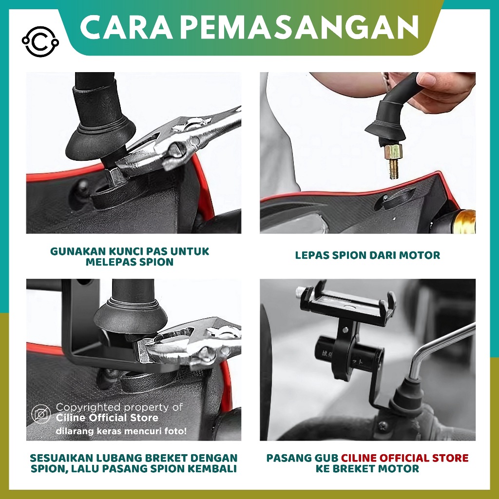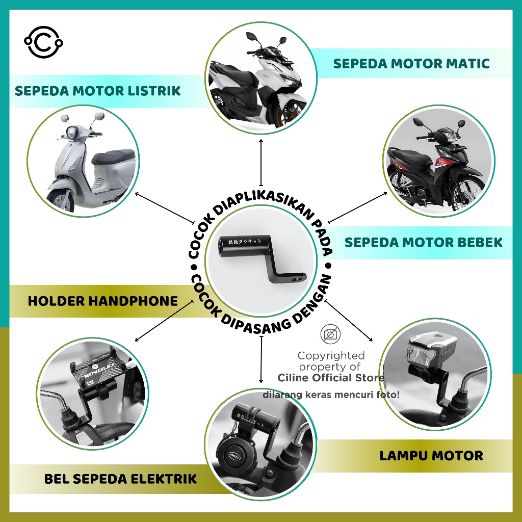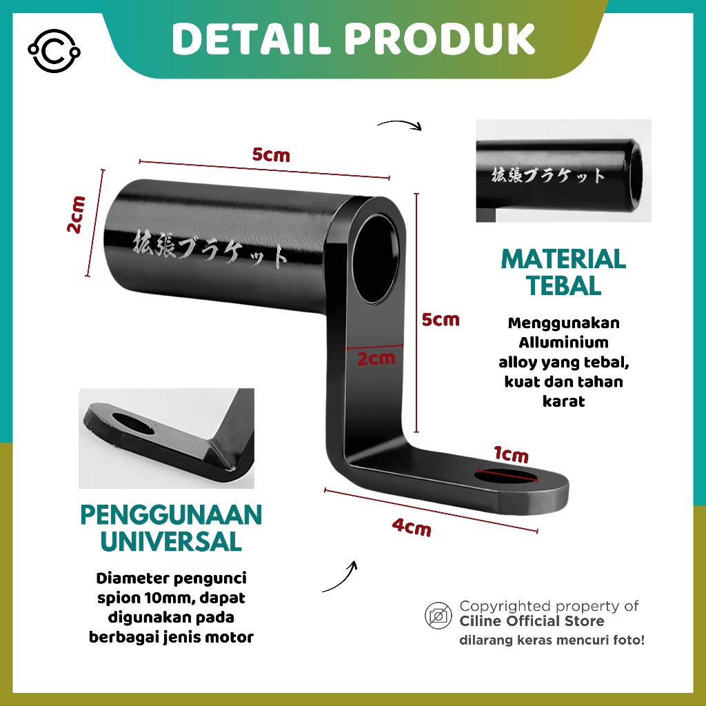 Ciline Braket Spion Holder HP Dudukan Lampu Moto Bar Tembak Spion Cnc Universal Allumunium Alloy