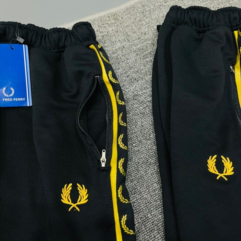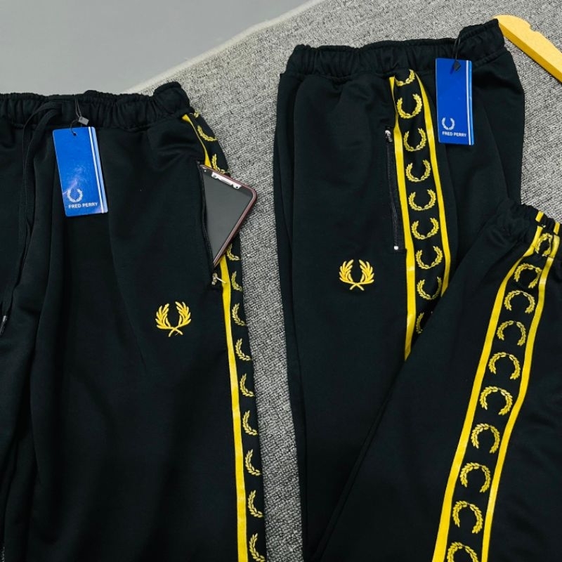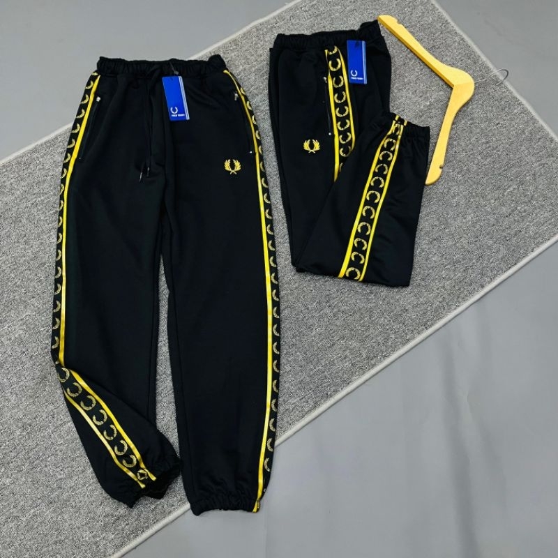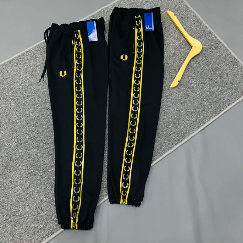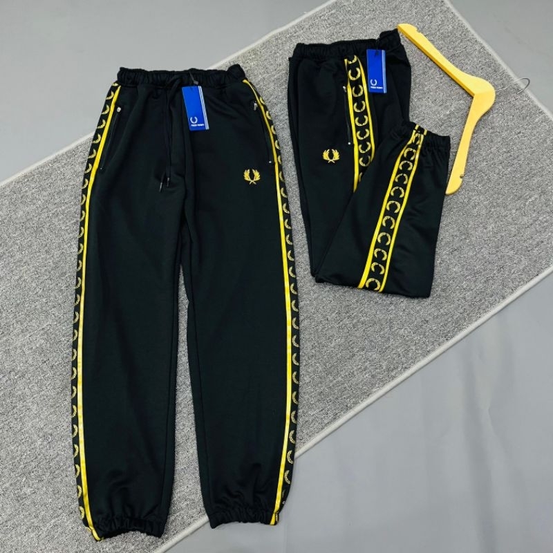 Taped Track Pant Fredperry Contras Hitam Gold FullTag Label