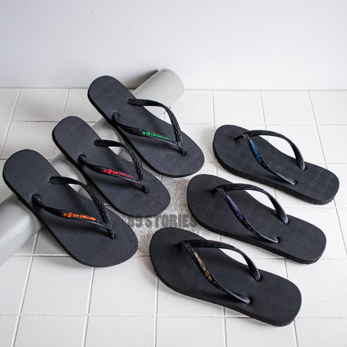 Satuan Sandal Jepit / Sendal Jepit Sun Swallow Hitam Full Black 11-12 - Fullblack Polos, 11