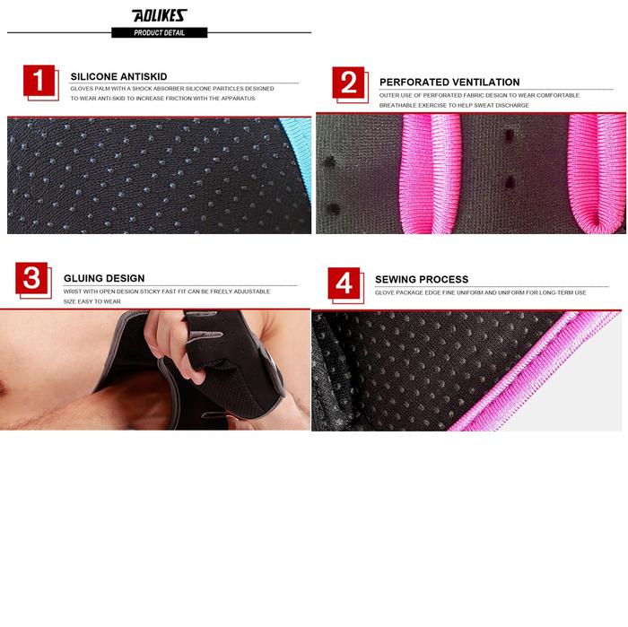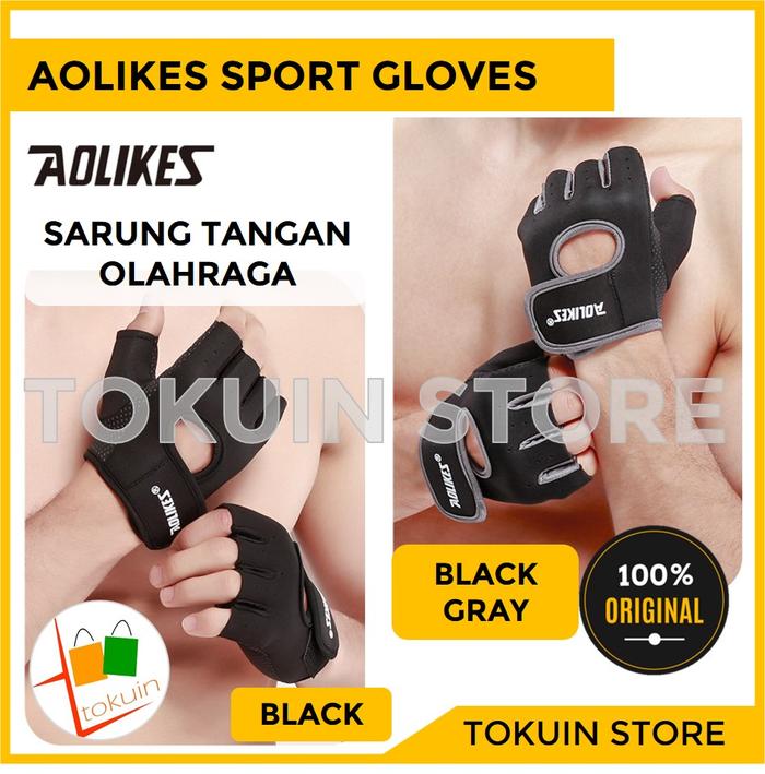 SARUNG TANGAN OLAHRAGA GYM GLOVES AOLIKES SPORT FITNESS CYCLING GLOVES - BLACK, L