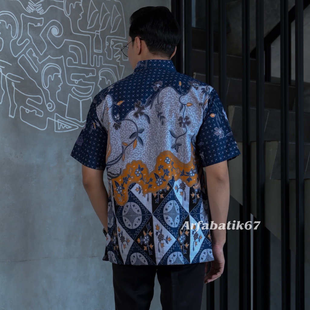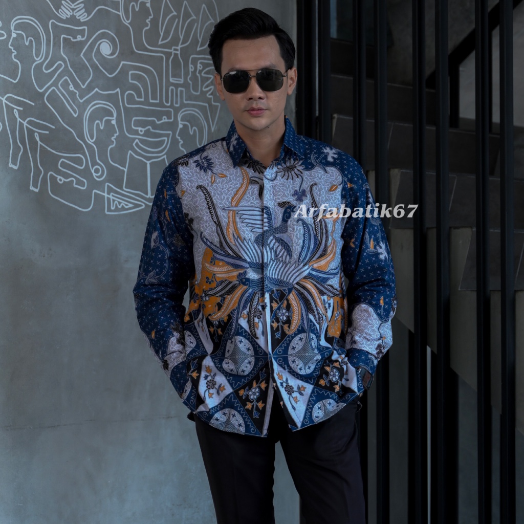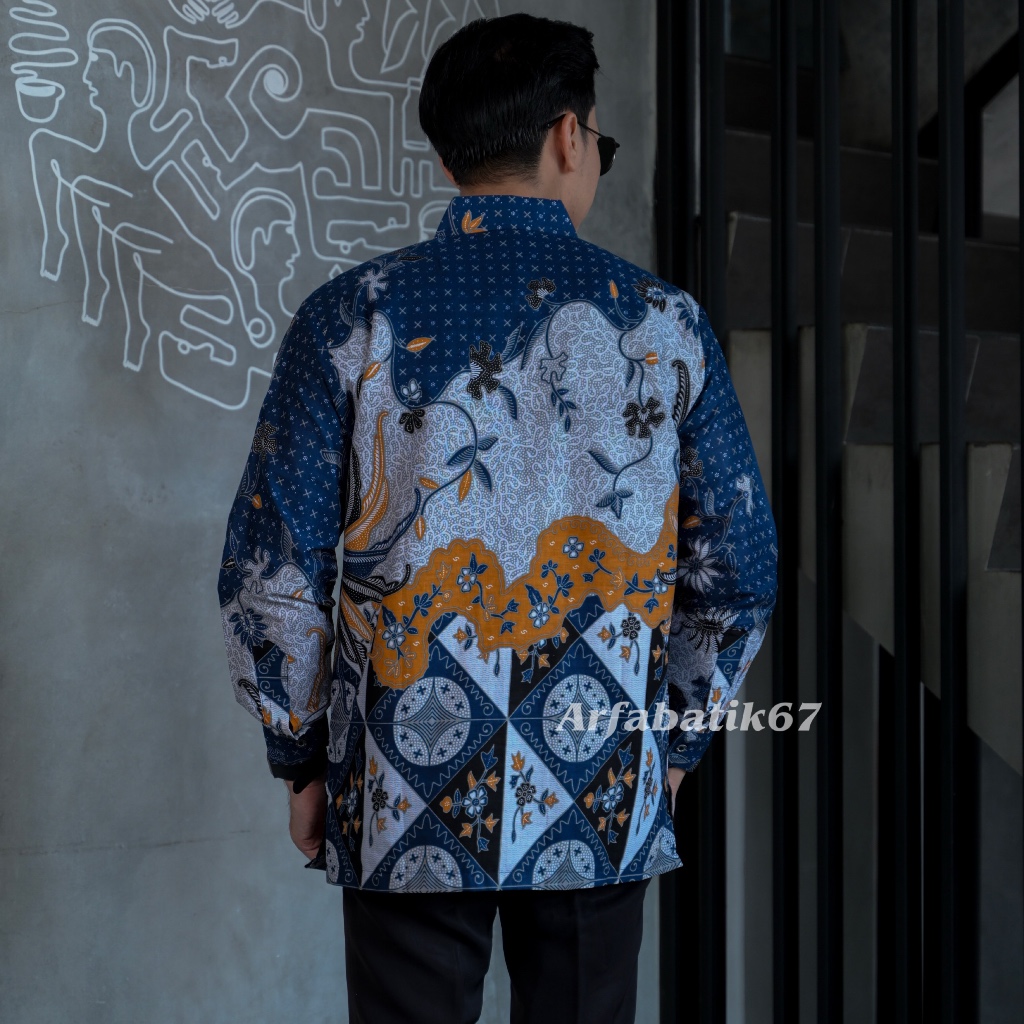 ADINATA BIRU DONKER KEMEJA BATIK PRIA LENGAN PANJANG KATUN SOLO LAPIS FURING READY SERAGAMAN BY ARFABATIK67