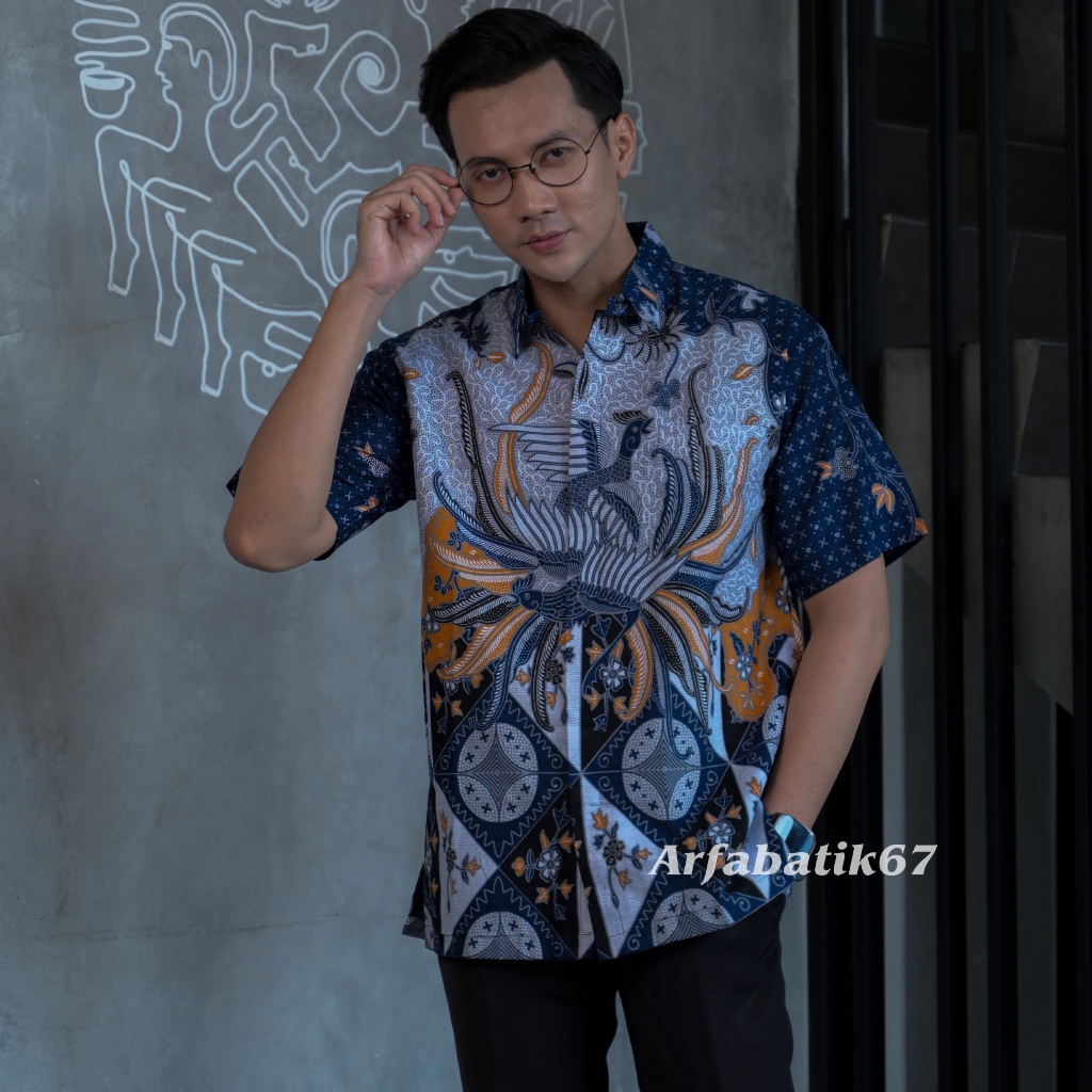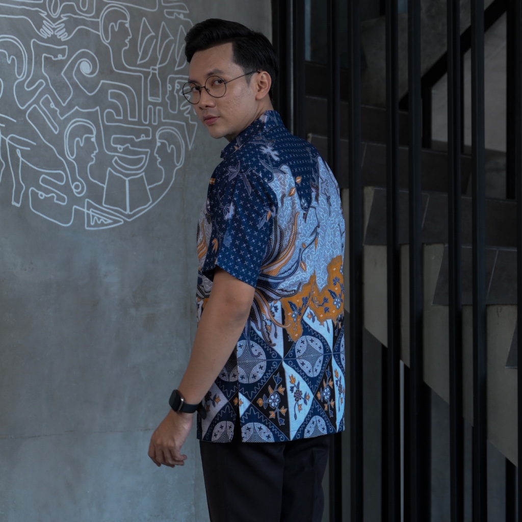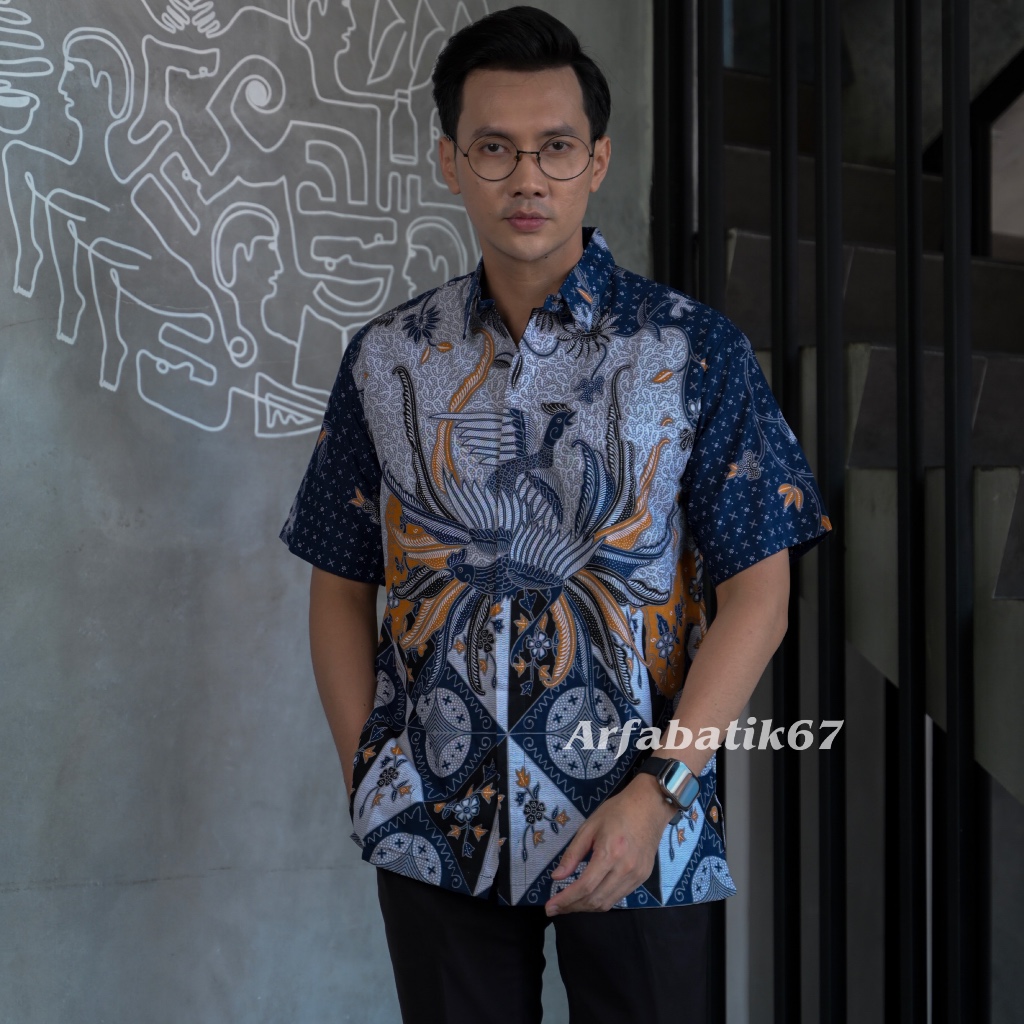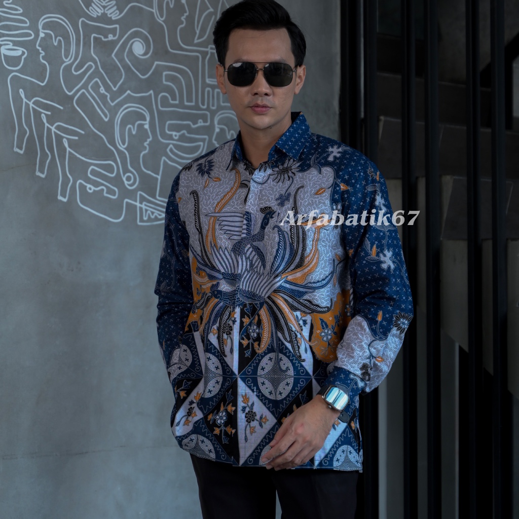 ADINATA BIRU DONKER KEMEJA BATIK PRIA LENGAN PANJANG KATUN SOLO LAPIS FURING READY SERAGAMAN BY ARFABATIK67