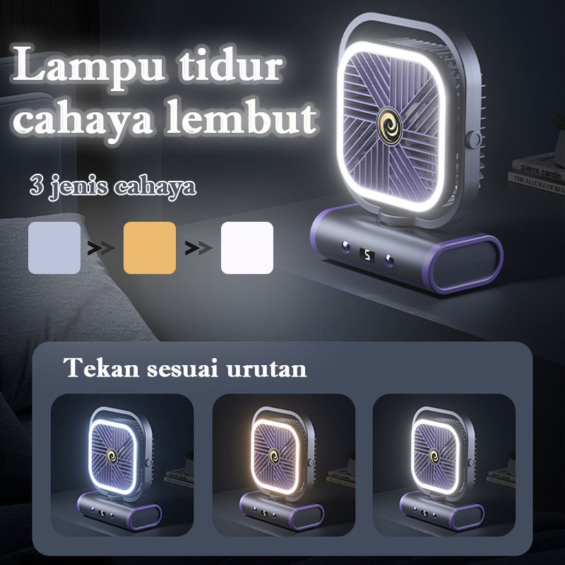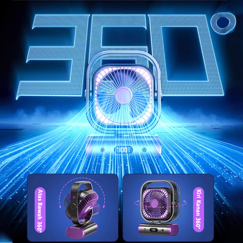 Kipas Angin Multifungsi Outdoor Camping 5 Level Angin Dingin Kepala Goyang Otomatis Lampu