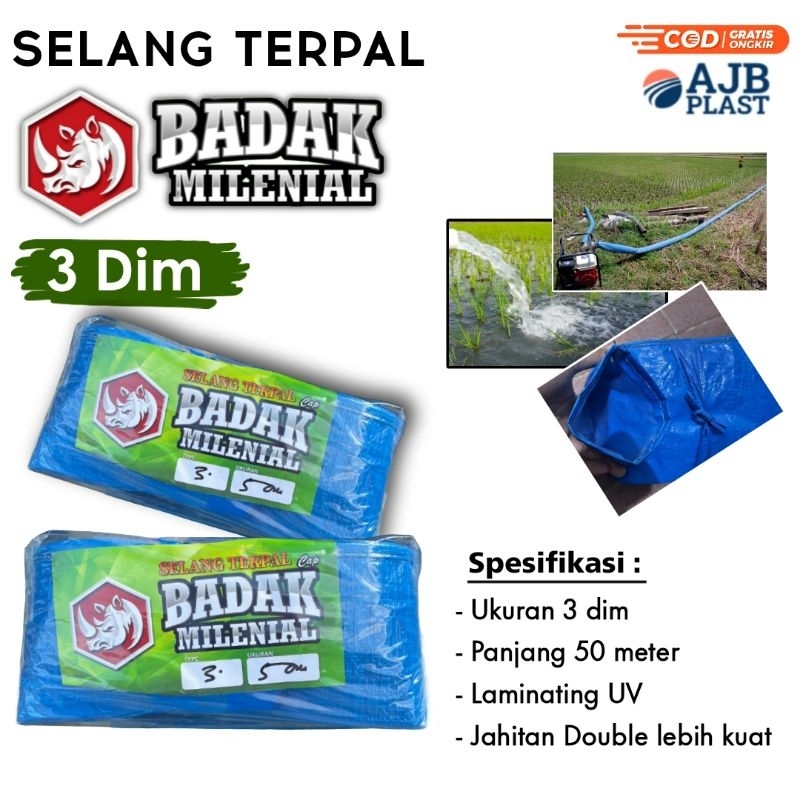 Selang Terpal Lapisan Plastik 3 Dim/Inch Panjang 50 Meter Termurah