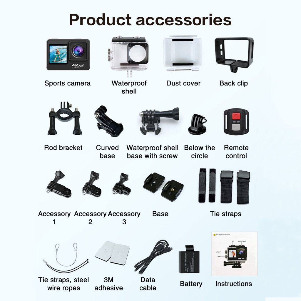 Q60AR Camera 4K HD 24MP WiFi Action Camera 170° Wide Angle Waterproof Photographic Cameras For Outdoor Sports Divin