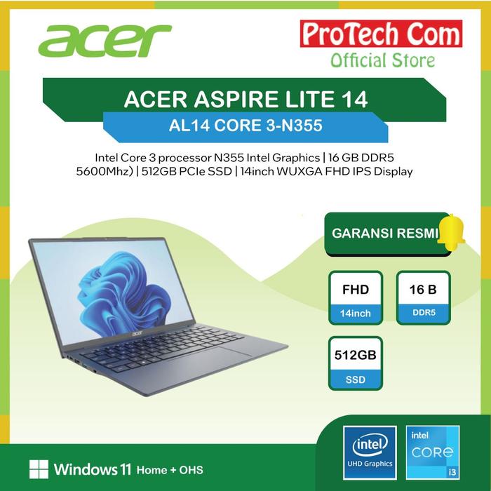 Acer Aspire Lite 14 Al14 Core 3-N355 8Gb 512Gb Ssd 14.0" Wuxga Ips W11+Ohs - Unit