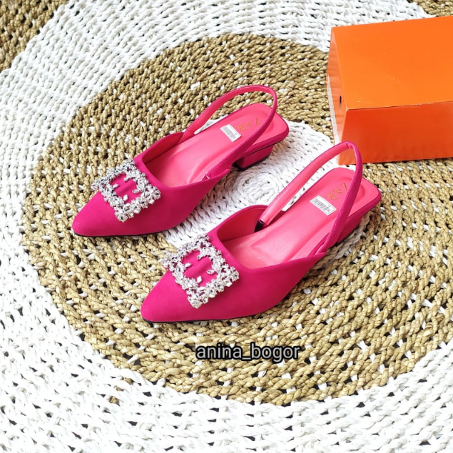 SEPATU HEEL PESTA WANITA TERBARU DAN TERVIRAL/SEPATU HEEL PESTA ZR099/SEPTU HEEL BUSTONG BAHAN SWEEDE/BLUDRU