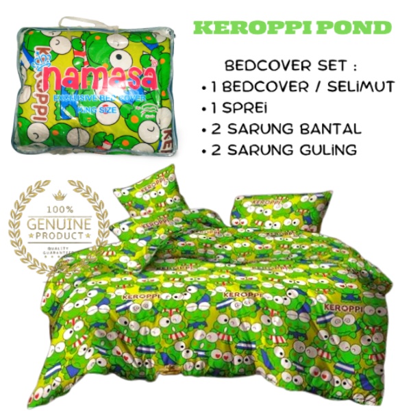 NEW Bed cover set Disperse + sprei ukuran 180X200 motif Keropi bahan tidak luntur adem