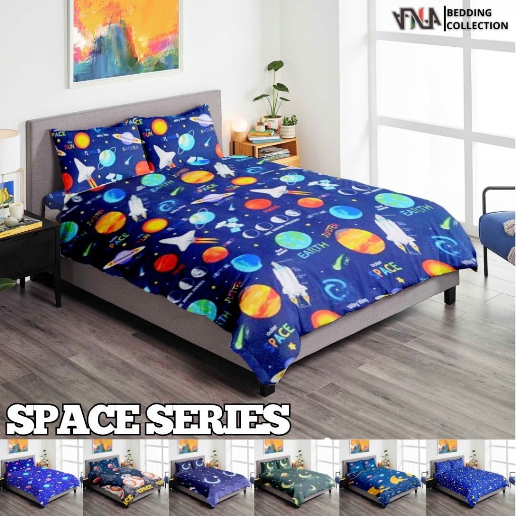 [SERI SPACE] Bedcover+Sprei Bahan Katun Lokal Premium Halus Ukuran Single-Extra King