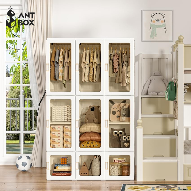 ANTBOX Lemari Pakaian Transparan 15 Box 3 Gantungan 890L Wardrobe Minimalis Lemari Lipat Multifungsi
