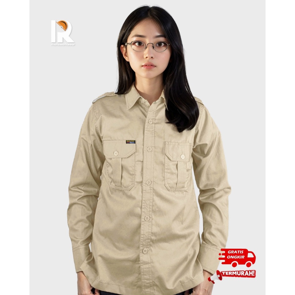 BAJU PDL/ PDH POLOS, Lapangan/ Outdoor/ Operator/ Mekanik, Kemeja Formal Panjang Warna Biru Turkish, Krem Muda, Ung