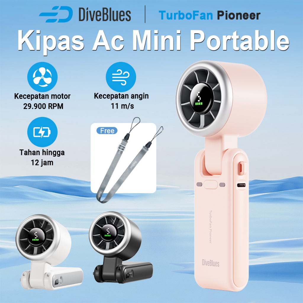 Diveblues Kipas Ac Mini Portable 4000Mah High-Speed 29900RPM 5 Gear Wind Dapat dilipat Digital Display Adjustable L
