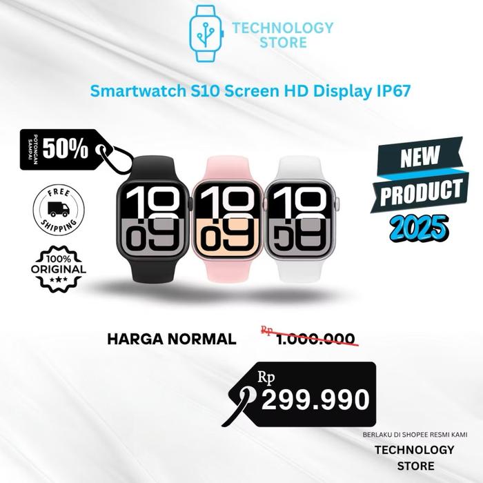 SMARTWATCH S10 SCREEN HD DISPLAY IP67 WATERPROOF BLUETOOTH ANDROID IOS JAM TANGAN PINTAR - HITAM