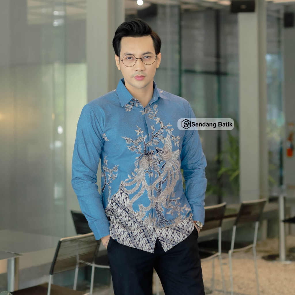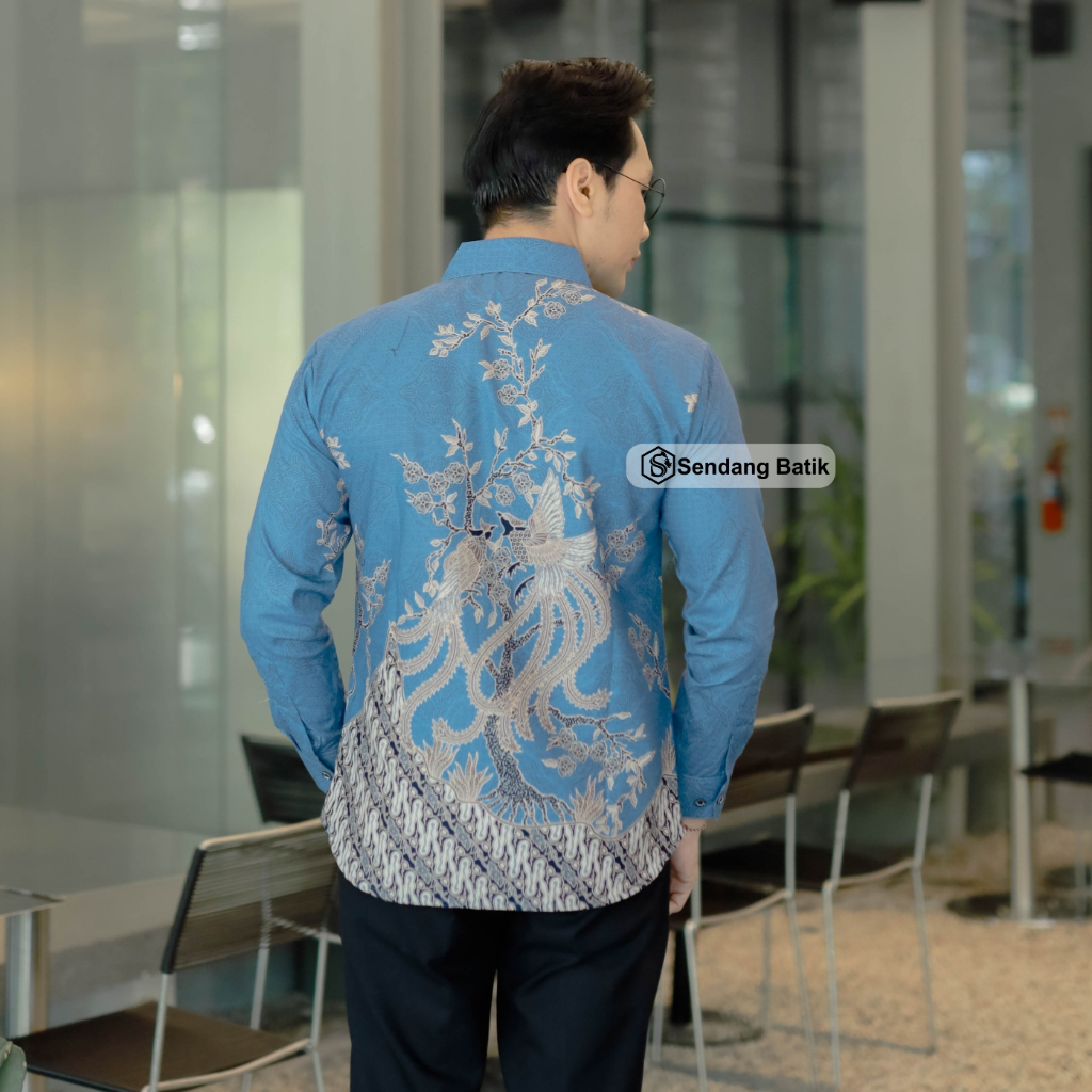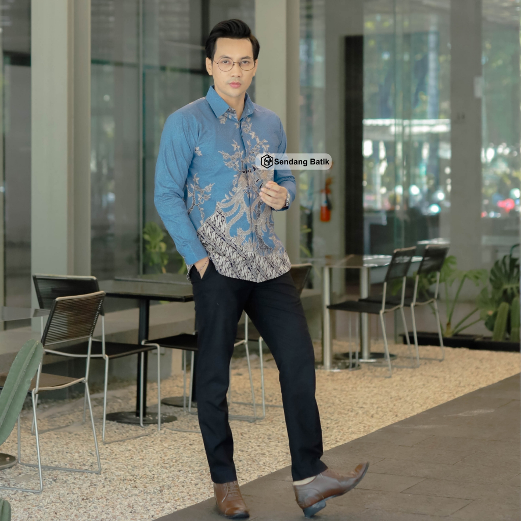 SENDANG BATIK Atasan Batik Motif Narapati Biru Kemeja Batik Pria Premium Lengan Panjang Lapis Furing Erro Hem Konda