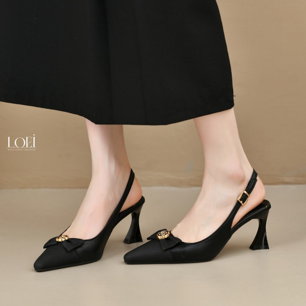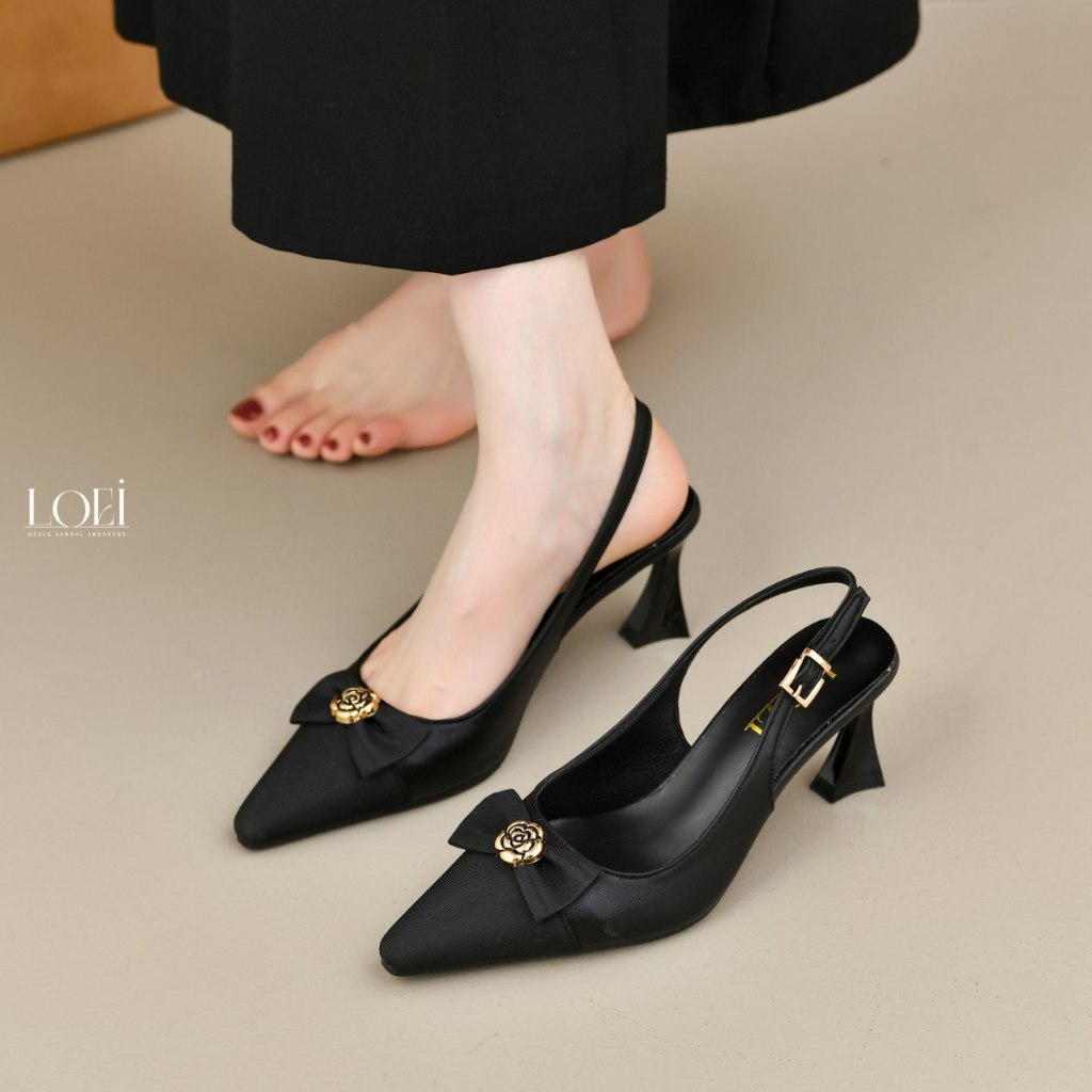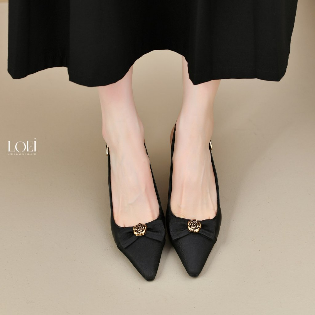 LOEI Evelyn High Heels Wanita Elegan Party Aksen Bunga Pita C11