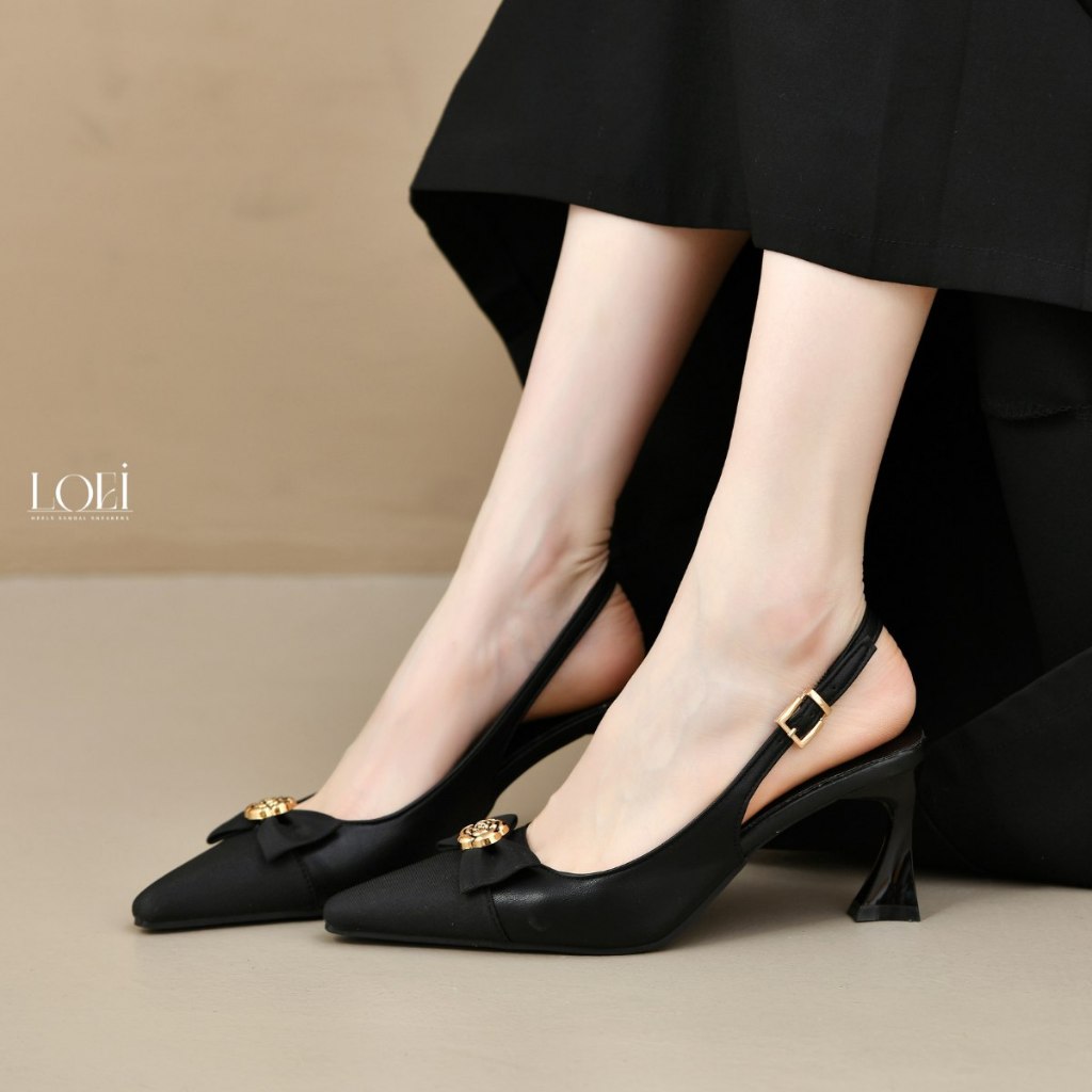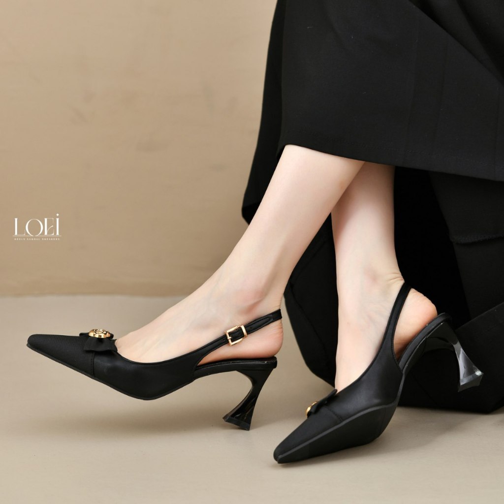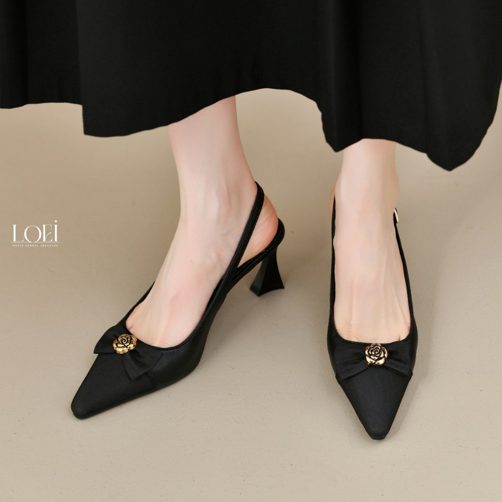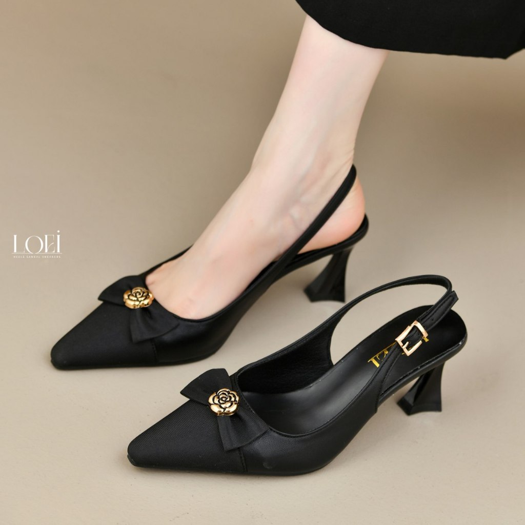 LOEI Evelyn High Heels Wanita Elegan Party Aksen Bunga Pita C11