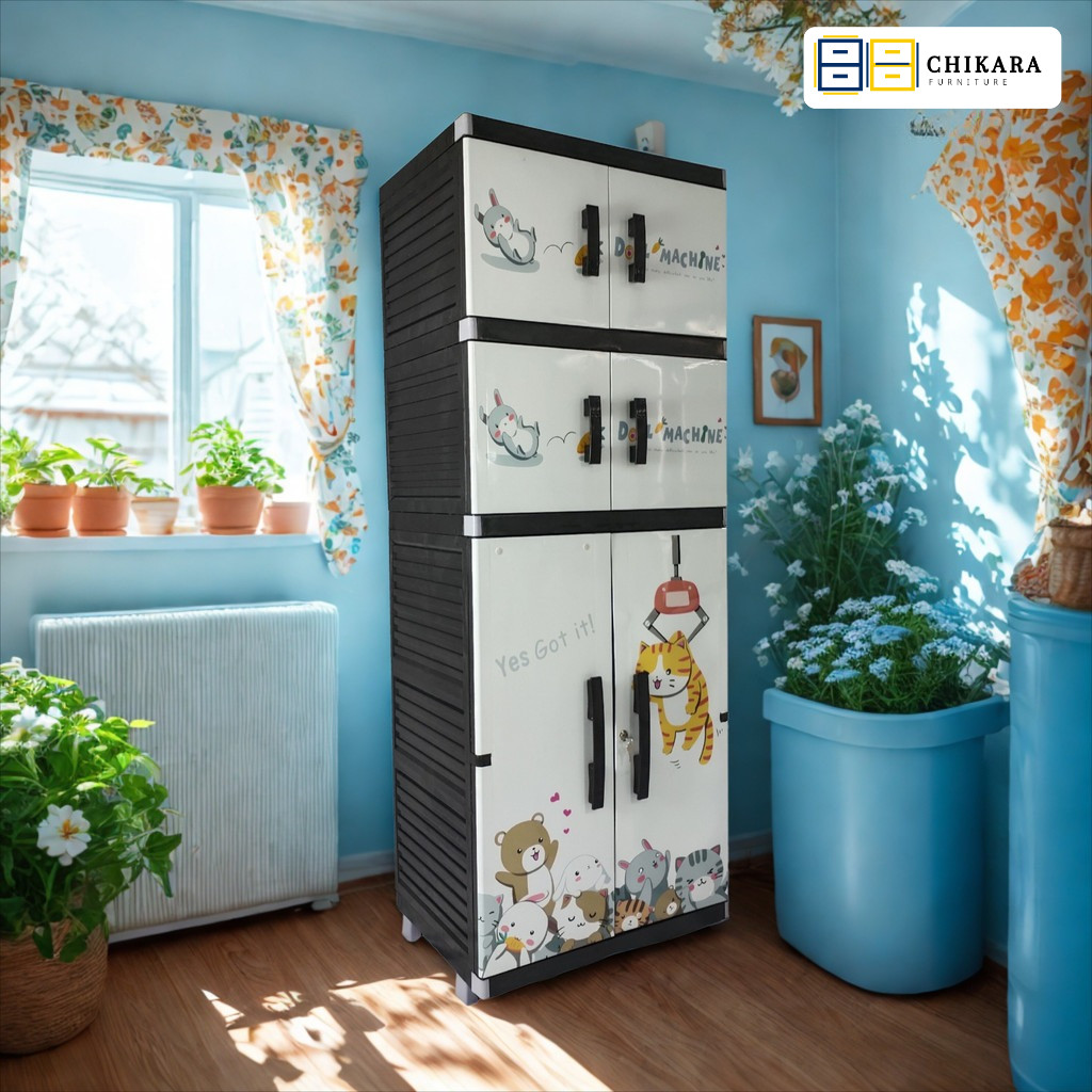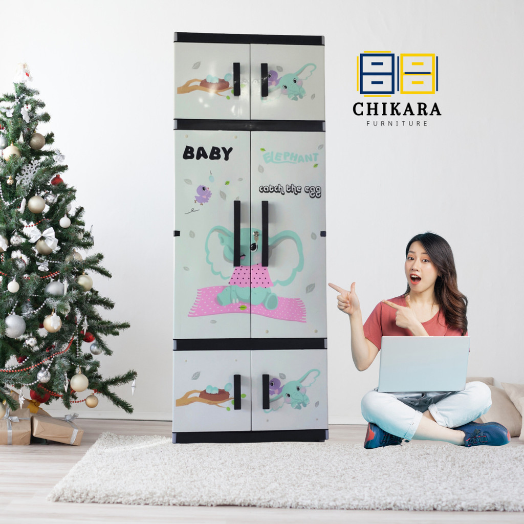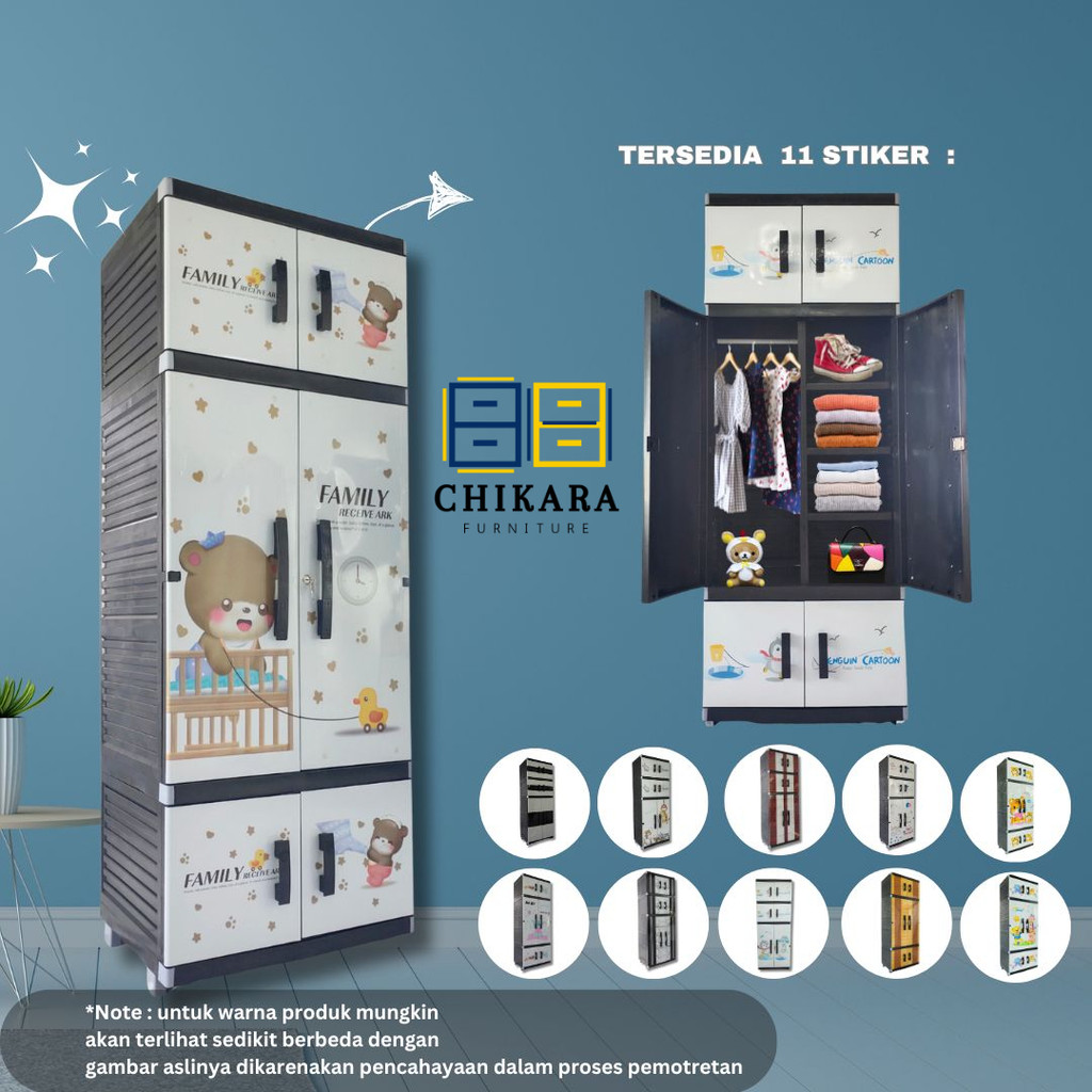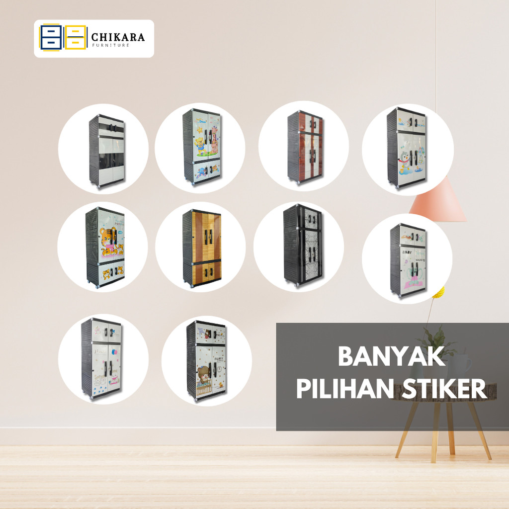 CHIKARA Lemari Pakaian Plastik MR PLAS GANTUNGAN STICKER JUMBO Lemari Susun Karakter Cermin Kunci