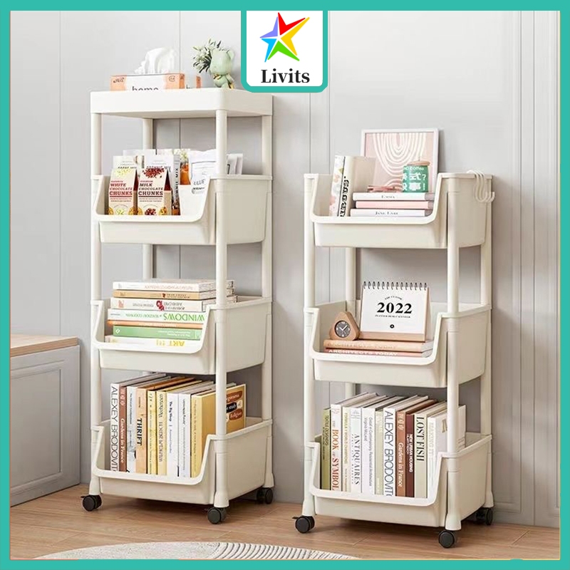Livits - Rak Susun Serbaguna 3-5 Tingkat Dengan Roda Portable untuk Buku Mainan & Penyimpanan