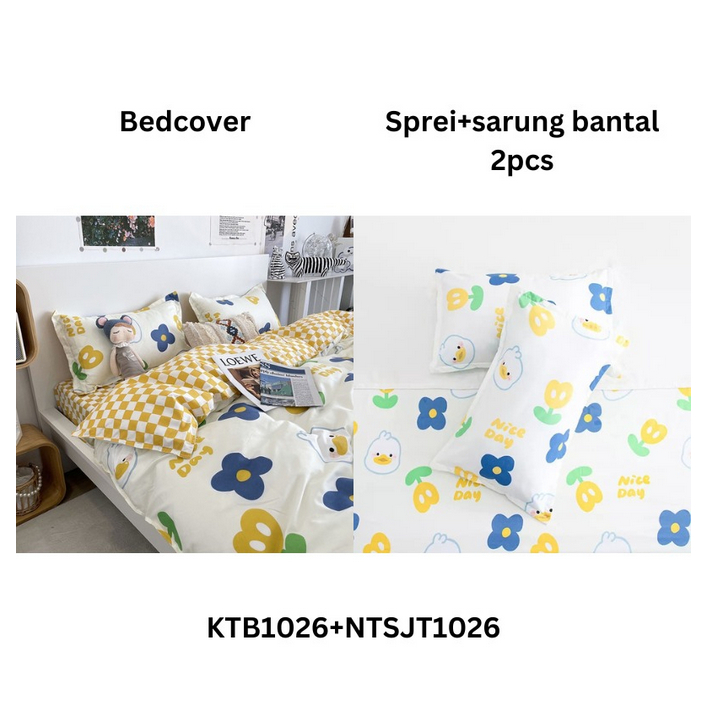 Hoas Official Shop 1 SET Bedcover + Sprei 120cm Bedcover Tanpa Busa Seprei Polyester Premium Sarung Bedcover Set Se