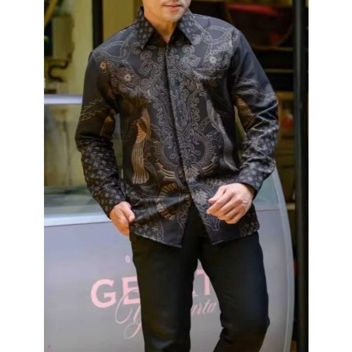 Kemeja Batik Pria Lengan Panjang Motif Dimensi Abu Size M L XL XXL