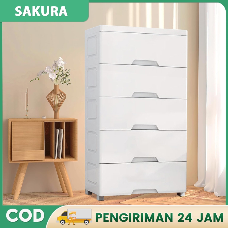 Sakura Lemari Pakaian Putih Wardrobe Putih Lemari Baju Lipat Plastik Tebal Pintu Magnet Garansi lima tahun ]