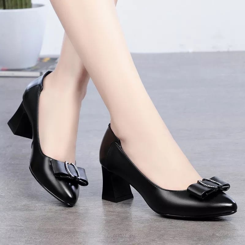BFS - Sepatu Wanita High Heels Wanita Kerja Terbaru Termurah Kekinian Tinggi Hak 5cm Variasi Pita MD 04